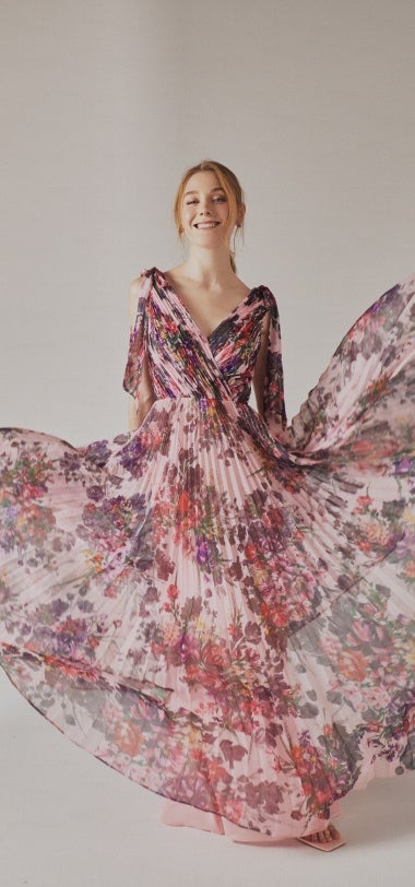 Pleated maxi dress in flowing chiffon