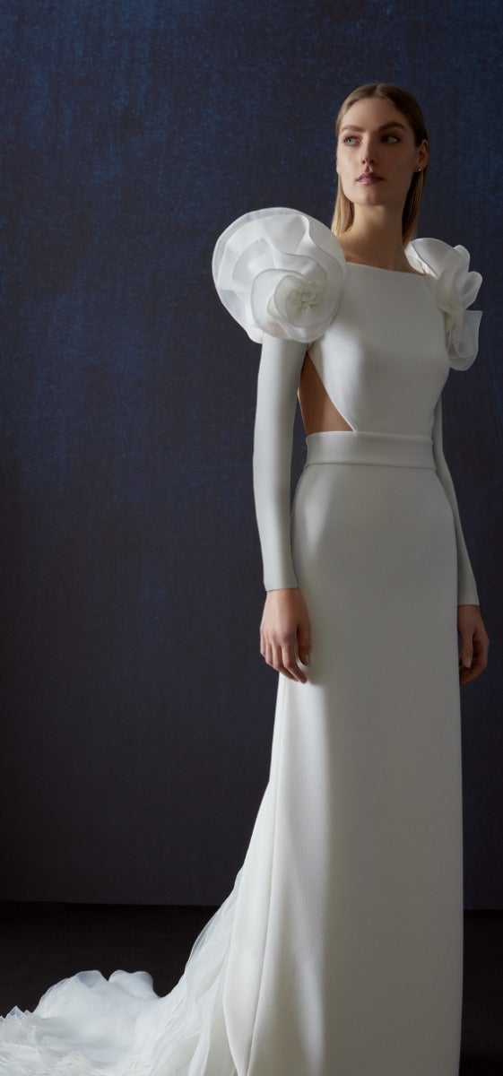 Por otro lado, el corte princesa es perfecto para quienes desean un look majestuoso y teatral. Con su cintura ajustada y una falda amplia y voluminosa, este estilo evoca un aire de cuento de hadas, añadiendo un toque de dramatismo y lujo al look nupcial. Ambas opciones ofrecen la oportunidad de jugar con tejidos, detalles y apliques para personalizar cada vestido, asegurando que cada novia se sienta única y especial en su gran día.