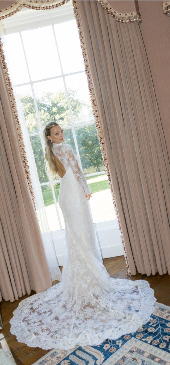 On October 3rd, Vikings actress Georgia Hirst married Elliot Thornhill in a dreamy ceremony in the UK. Georgia dazzled in two exquisite Pronovias gowns: LOIRE, a romantic lace design, and STING, a sleek and modern look for the evening.